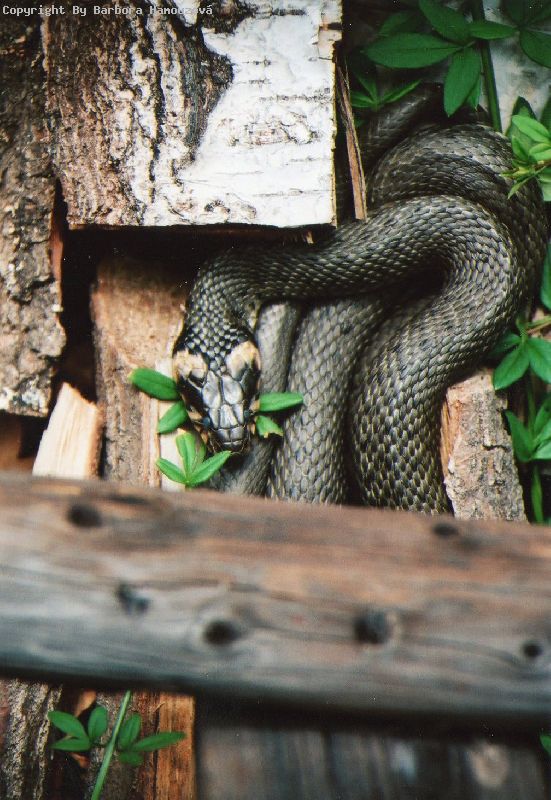 Název snímku:tak to je naše překrásná užovčička / bydlí nám na chatě a i díky ní jsme přišli o myšky:)))