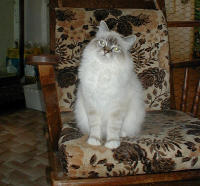 O plemeni:Birma je polodlouhosrsté plemeno s modrýma očima a tmavými odznaky.Její zvláštností jsou bílé \\"ponožtičky\\" pravidelným tvarem ukončující tmavé odznaky nohou. Nenáročné kočičky na údržbu srsti, velmi komunikativní a milé. Naprosto snášenlivé s jinými druhy domácích zvířat.