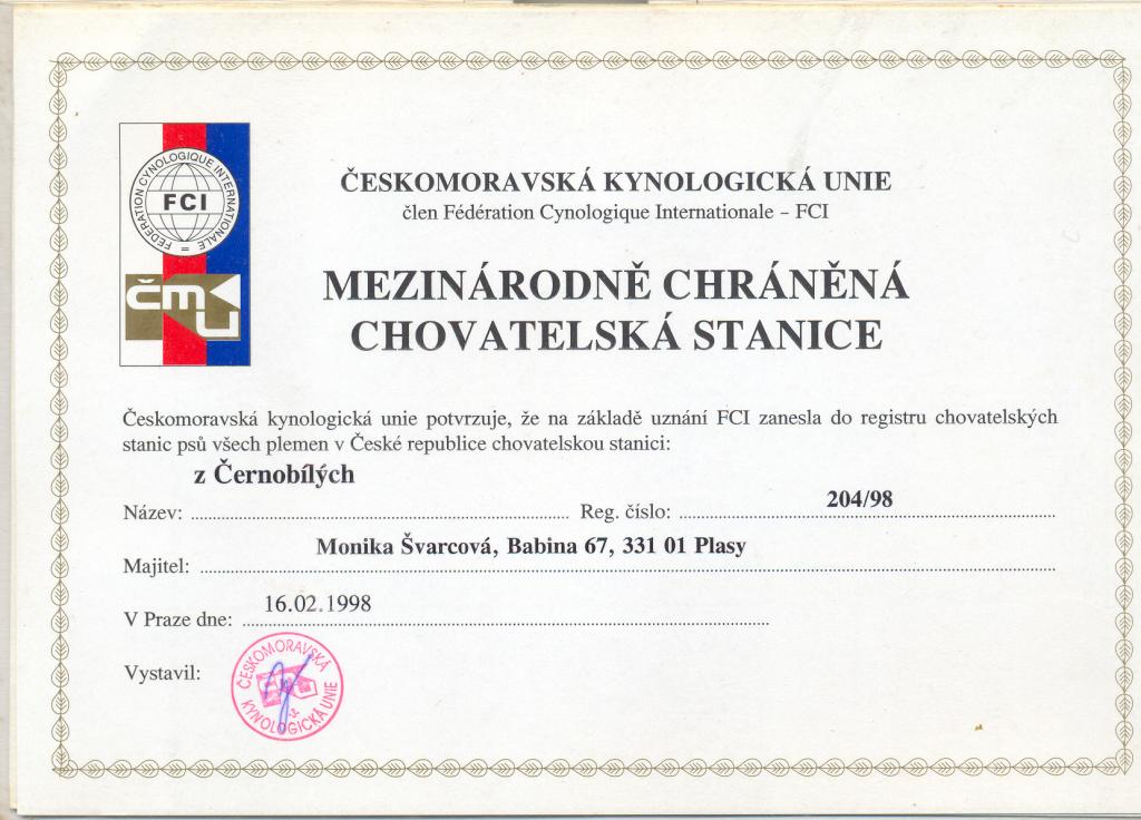Reg. číslo CHS: 204/98