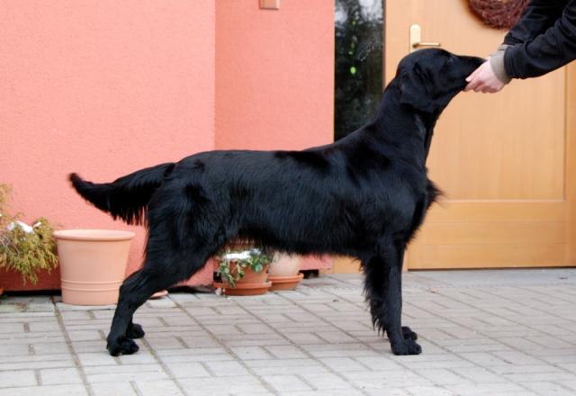 O plemeni:Flat coated retriever nás nadchnul nejen svým vzhledem, ale hlavně svou milou povahou, dobrosrdečností a touhou vyhovět člověku. Toto plemeno není agresivní ani příliš dominantní. Právě naopak - vychází se psy i s lidmi a miluje děti. Flati jsou velice společenští a komunikativní, učenliví i hraví a proto jsou ideálními společníky do rodiny nebo k lidem se sportovními ambicemi.