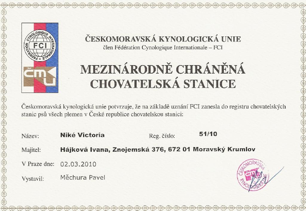 Chovatelská stanice: NIKÉ VICTORIA