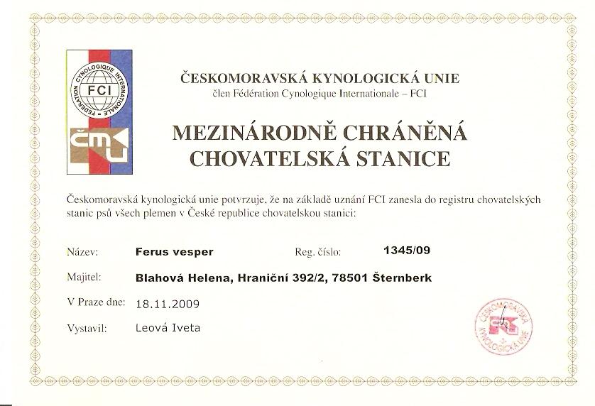 Reg. číslo CHS: 1345/09 Certifikát CHS:Zobrazit Certifikát ::: Plánujeme vrh: 26.07.2014 Hodnocení: 96 bodů ze 100