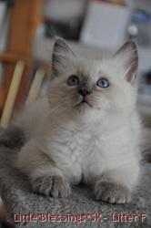 O nás:Little Blessings *SK je chovná stanica ušlachtilých mačiek plemena Ragdoll, ktorým sa venujeme v našom domácom prostredí plnom lásky a permanentnej starostlivosti. Naším cieľom je vychovávať mačiatka vynikajúceho exteriéru s úžasnou ragdoliou povahou, ktoré budú tešiť ich nových majiteľov a do svojich nových domovo prinesú svetielko mačacieho šťastia.