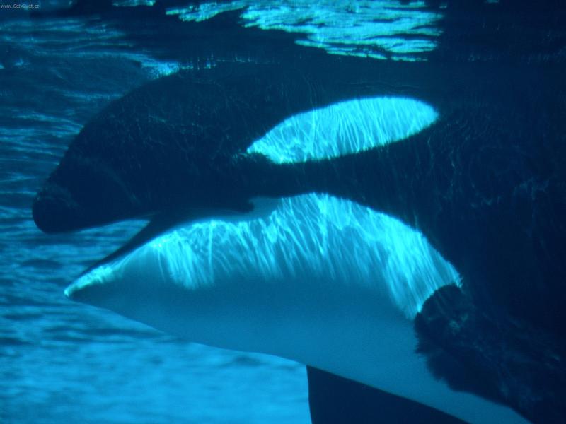 Foto: Kosatka dravá-Kosatka dravá pluje pod hladinou a přemyšlí nad Latinou přemyšlí přemyšlí nic neví že nemá v moři nepřítele to řáby vědí