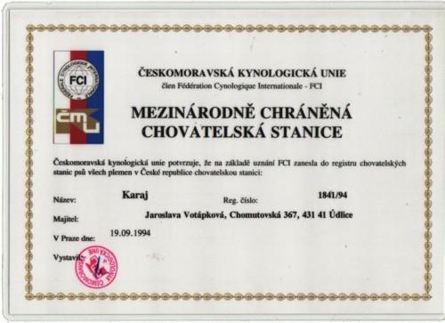 Reg. číslo CHS: 1841/94 Certifikát CHS:Zobrazit Certifikát ::: Plánujeme vrh: 10.07.2010 Hodnocení: 90 bodů ze 100