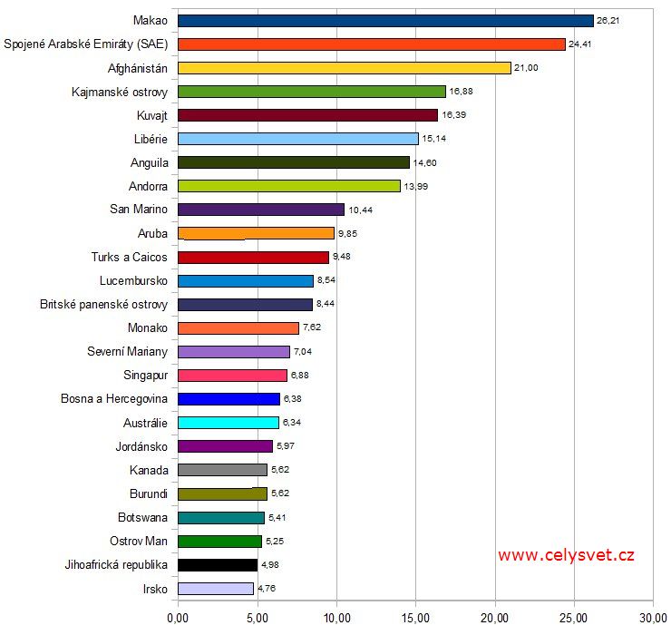 5.Kuvajt :::16.39 emigrantů na 1000 obyvatelVývoj :