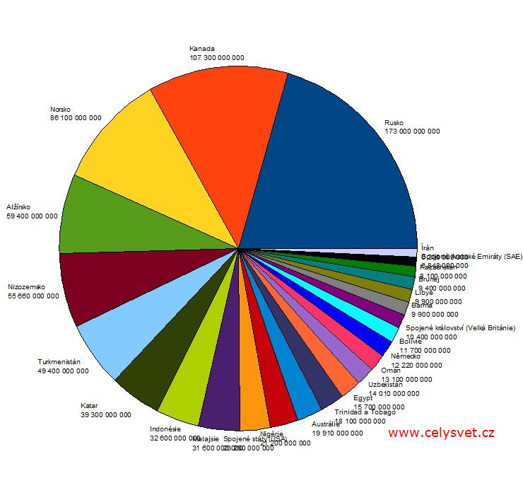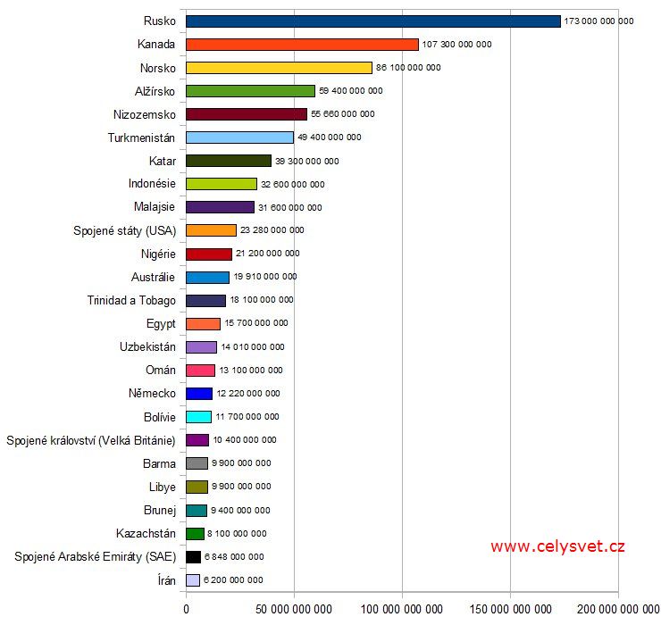 Zemní plyn - vývoz. Pořadí států